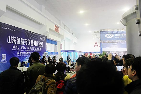 山東(國(guó)際)制漿造紙技術(shù)及裝備展覽會(huì)已成功舉辦十年,展會(huì)展出面積12000平方米,參展商約400余家,專業(yè)觀眾達(dá)15000余人,山東德瑞克攜2015新上市升級(jí)版產(chǎn)品亮相本次展會(huì),其中DRK101A拉力試驗(yàn)機(jī)采用進(jìn)口直流伺服電機(jī)和滾珠絲桿構(gòu)造性能更穩(wěn)定, 中英文自由切換配合智能化 觸摸屏操作更便捷,且實(shí)時(shí)顯示曲線和數(shù)據(jù)。此外,平滑度儀,耐破度儀,耐折度儀,撕裂度儀,紙箱抗壓機(jī)等十余種新型檢測(cè)儀器也是山東德瑞克本次展會(huì)展出的得意之作,美觀,穩(wěn)定,智能化,適中的價(jià)格,深得與會(huì)客戶的一致認(rèn)可與好評(píng)。